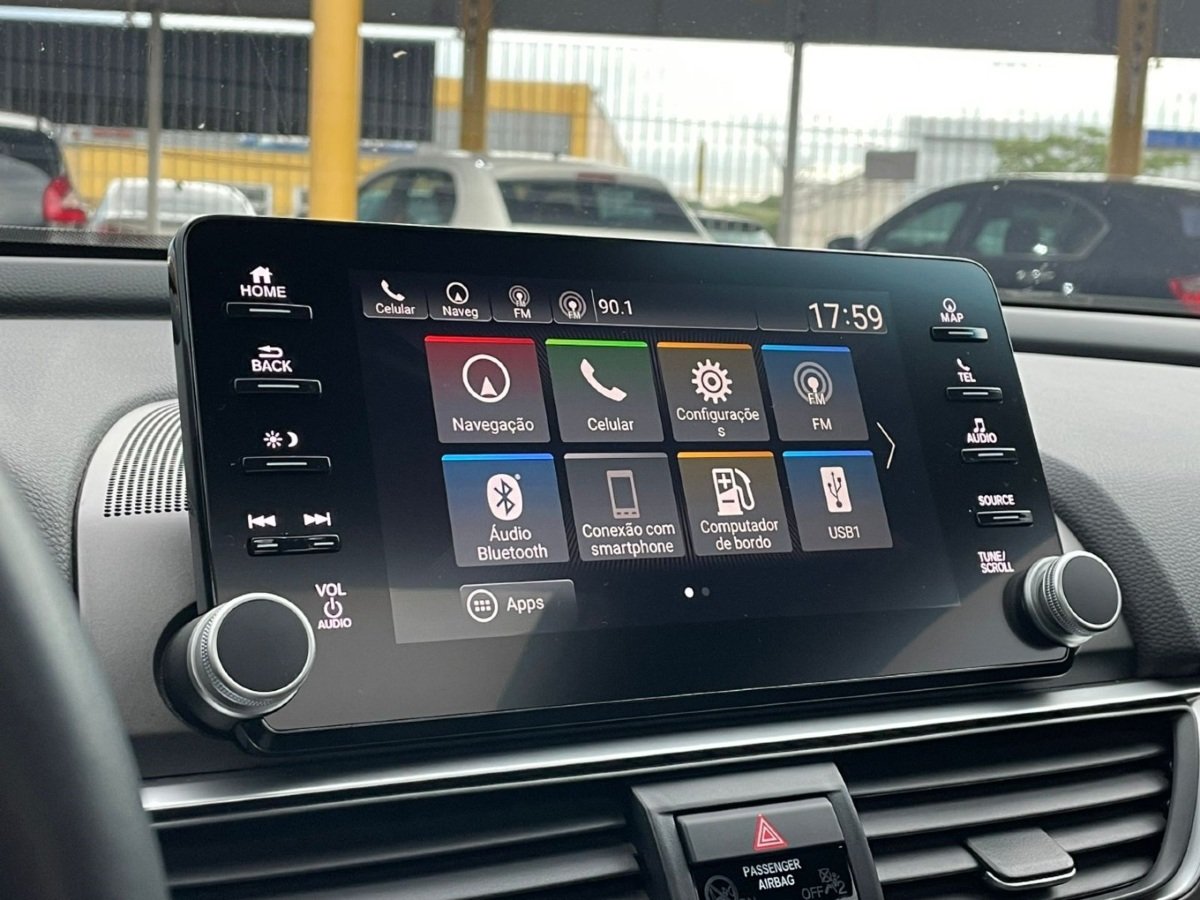 HONDA - ACCORD - 2.0 VTEC TURBO GASOLINA TOURING 10AT - 2019/2019 Cor: Preto Câmbio: Automático Combustivel: Gasolina Portas: 4 - IPVA Pago - Licenciado - Airbag laterais - Airbag motorista - Airbag passageiro - Ar condicionado - Ar condicionado Digital - Ar quente - Banco do motorista com ajuste de altura - Bancos de Couro - Câmera de ré - Computador de bordo - Controle de som no volante - Desembaçador traseiro - Direção Elétrica - Encosto de cabeça traseiro - Entrada USB - Farol de neblina - Freios ABS - GPS - Multimídia - Pára-choques na cor do veiculo - Porta copos - Retrovisores elétricos - Rodas de liga leve - Sensor de estacionamento - Vidros elétricos - Vidros elétricos Traseiros - Volante com regulagem de altura Com até 01 Ano de garantia motor e câmbio. Aprovação rápida de financiamento mediante a análise do banco. Entrada facilitada no cartão de crédito em até 18x com pequena taxa de juros. Pegamos o seu veículo como entrada, mediante a avaliação em uma de nossas lojas. Entre em contato e consulte condições. Contato: 65 99325a-5006